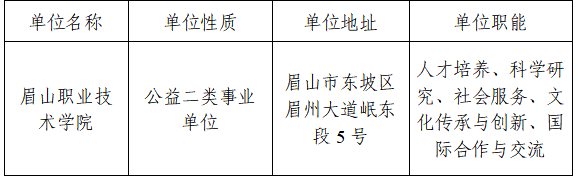 眉山职业技术学院(以下简称“学校”)是一所由眉山市人民政府举办的全日制公办高职院校,是全国和四川省乡村振兴人才培养优质校、四川省示范性高职院校、四川省高水平高职学校培育单位和高水平专业群建设单位。学校地处东坡故里—千载诗书城四川省眉山市,距省会成都60公里,距双流国际机场、成都天府国际机场均50公里,成眉间动车公交化运营,区位优越、交通便捷。学校现有马克思主义学院、天府新能源新材料产业学院、教育与文化传媒学院、现代农业学院、旅游与财贸学院、智能制造学院、天府低空经济产业学院、通识教育学院、技师教育学院等9个教学单位。